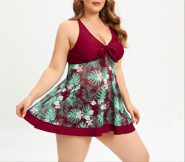 Red Floral Crossback Plus-Size Bikini Set with Crisscross Straps