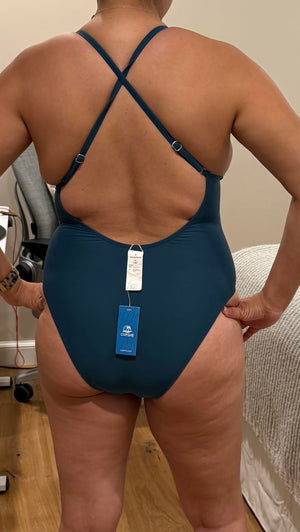 Our swimsuit's deep V-neck design enhances your natural curves, providing a confidence boost. The crisscross back adds style and support, making you feel fabulous on any beach day.